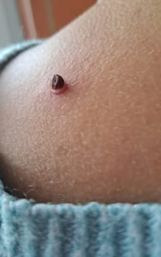 Dag 2–3: Hudfliken blir mörkare och börjar torka ut – helt normalt.